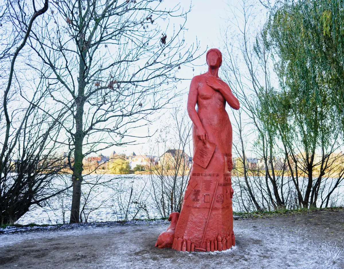 Skulpturen er skabt af billedhugger Kirsten Justesen, som er en markant skikkelse inden for feministisk kunst.