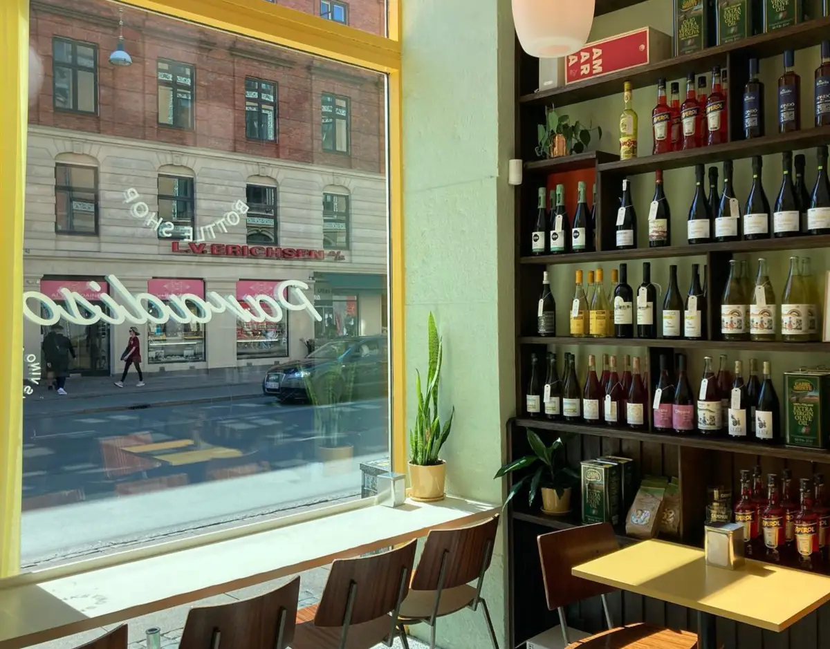 Her vanker der lækre italienske vine til særdeles rimelige priser i de skønneste pastelfarvede omgivelser. Blev du ikke helt mæt på stadion, kan du gå på opdagelse i deres menukort med ost, charcuteri og små velsmagende retter.