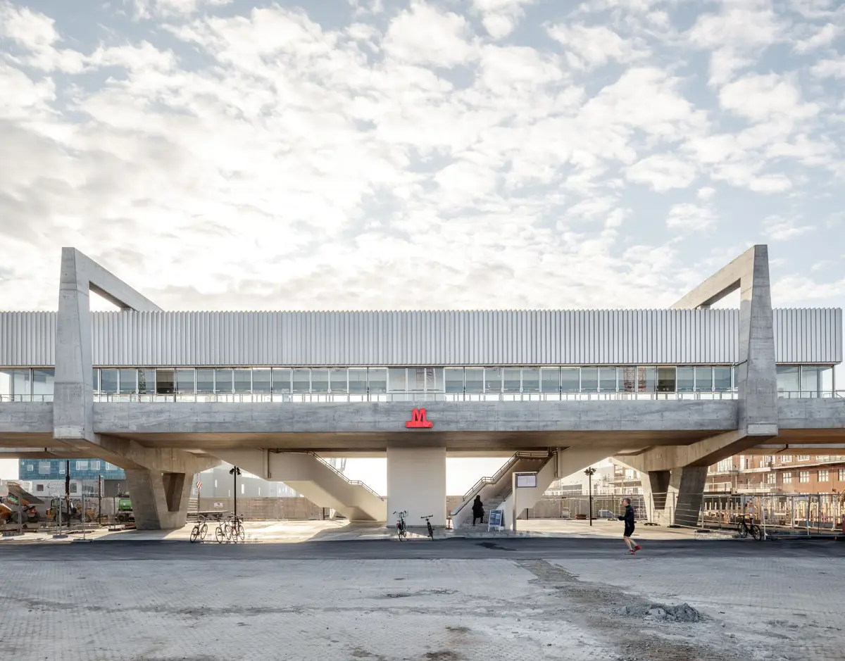 The elevated station is inspired by Nordhavn's historic port industry, and although it is both eye-catching and bombastic, it blends perfectly into the raw port surroundings.