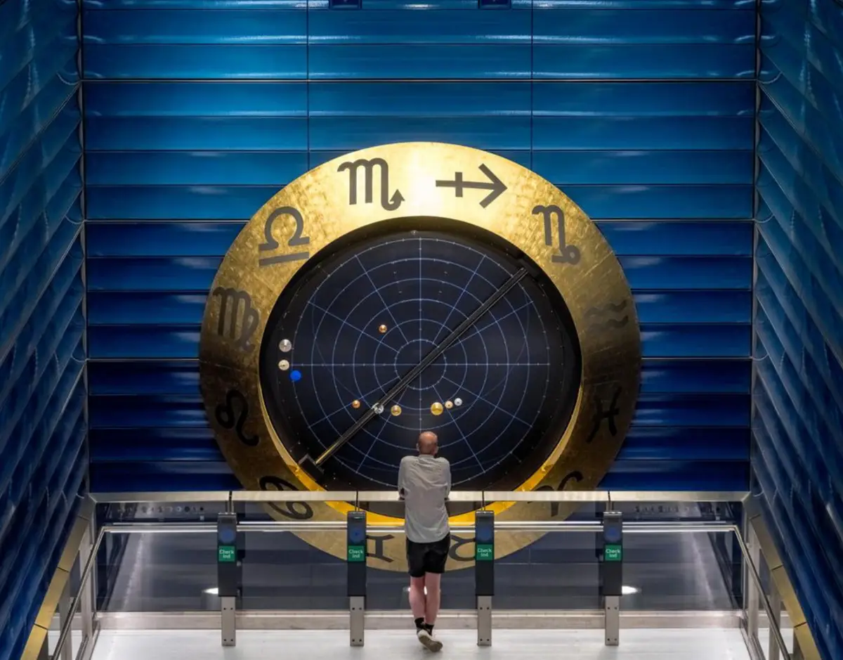 Henrik Plenge Jakobsen is known for his conceptual art that pushes our usual view of things we thought we knew: the kindergarten, the circus, the HT bus - and now also the metro station. The astronomical clock will go beyond the daily routine and give passengers a little greeting from outer space before travelling further into the city.